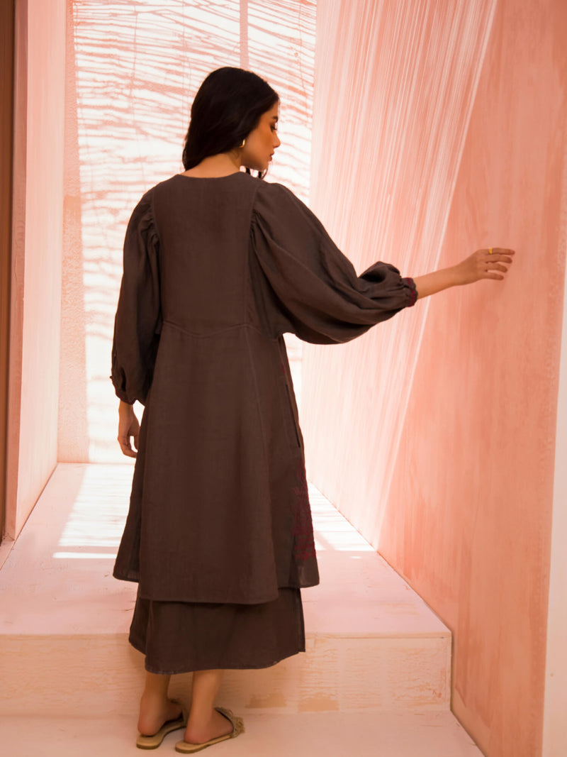 Our brown Zainy is a vacation-ready piece that embodies the label’s travel-inspired approach to design. Adorned with pink nomadic stitches all over and effortless to style, this piece is a key wardrobe essential season after season.