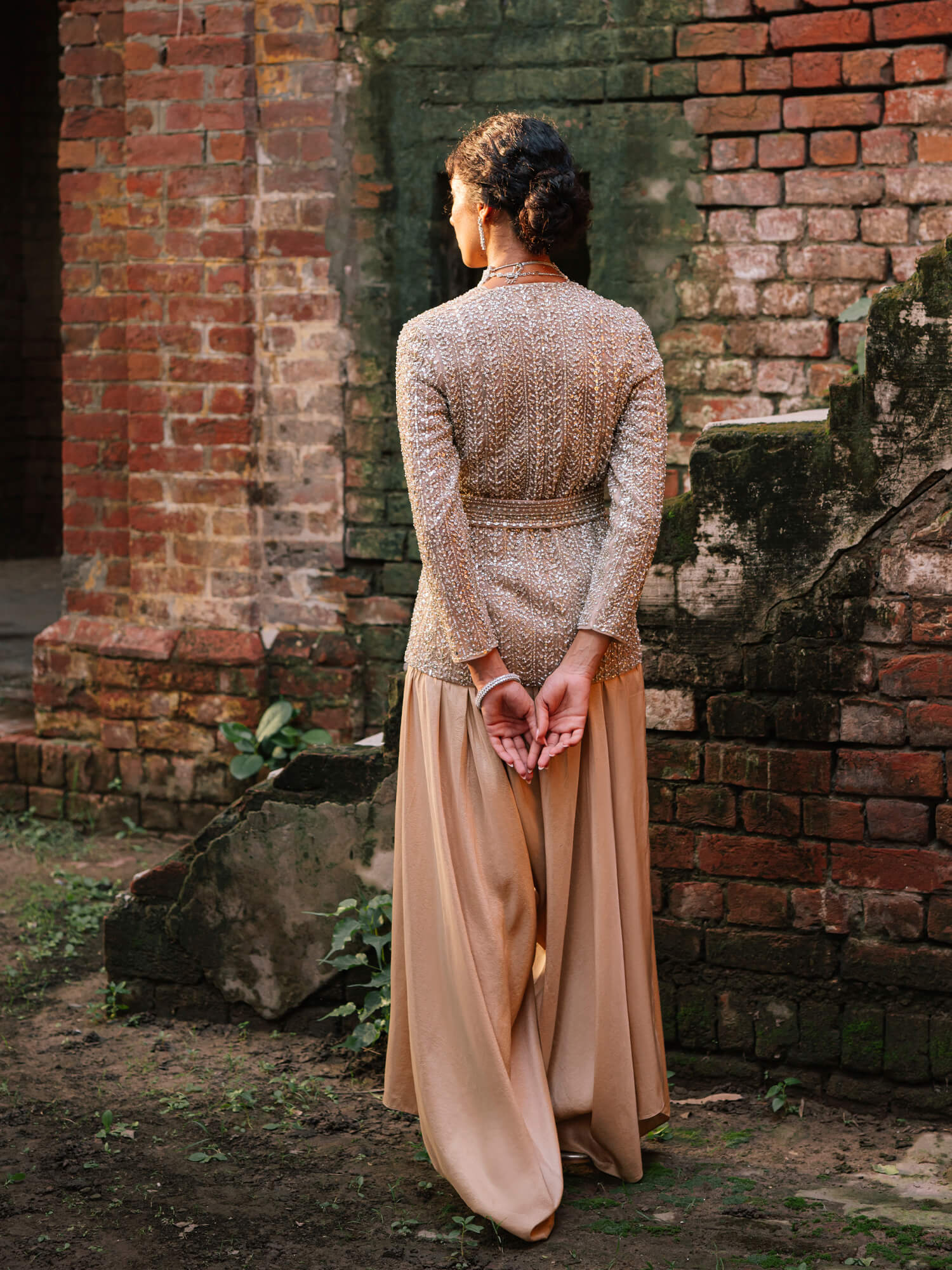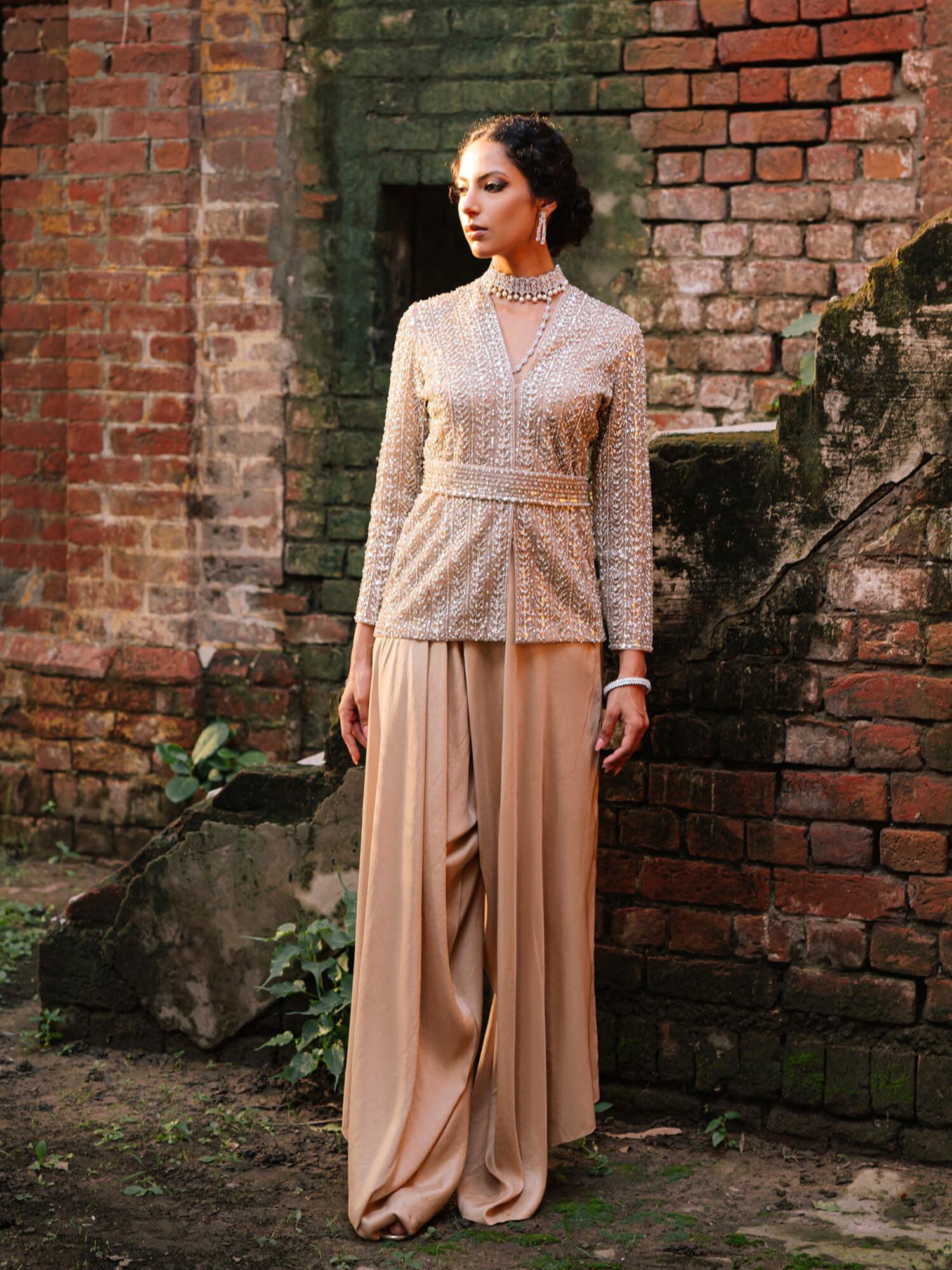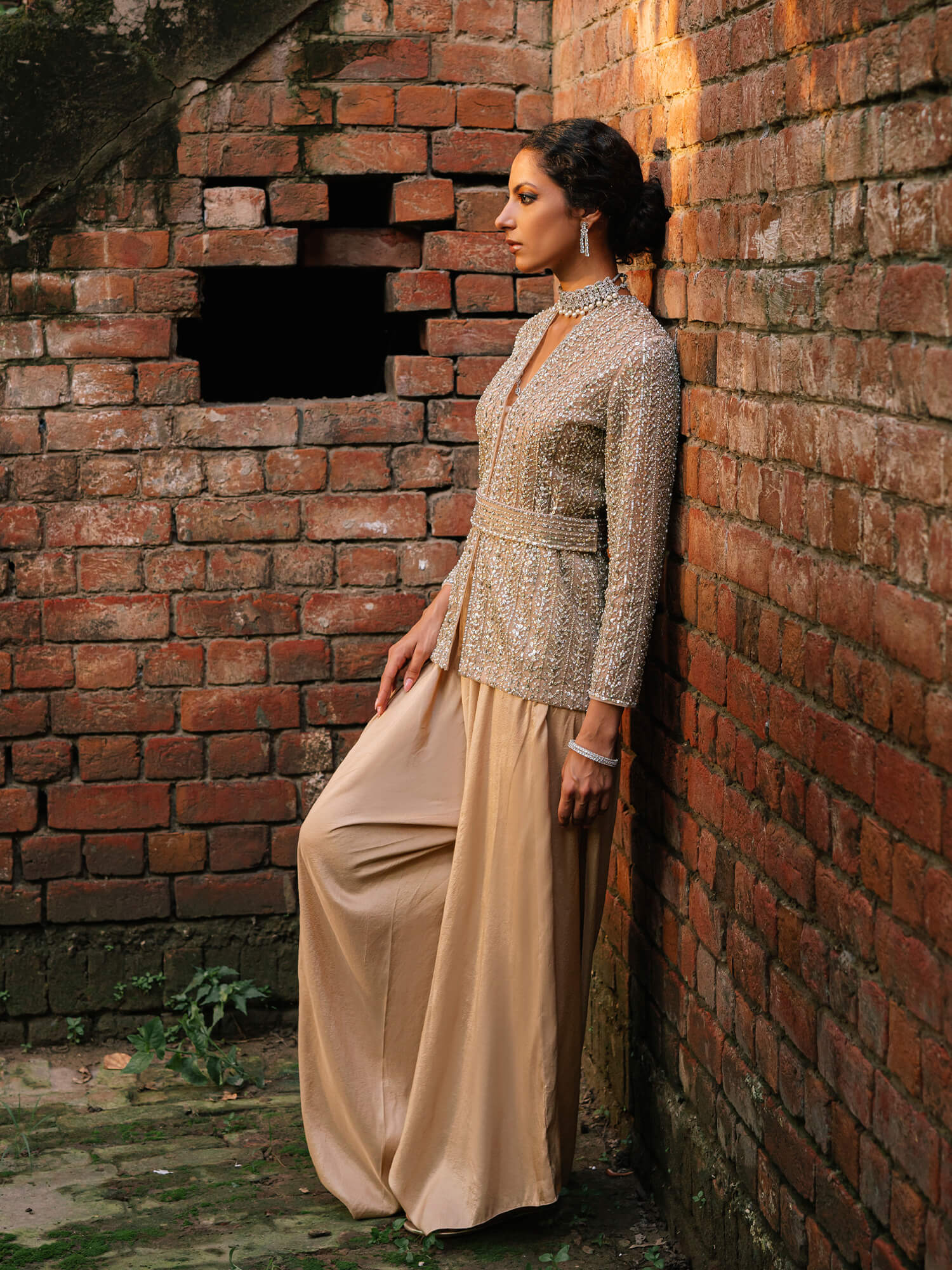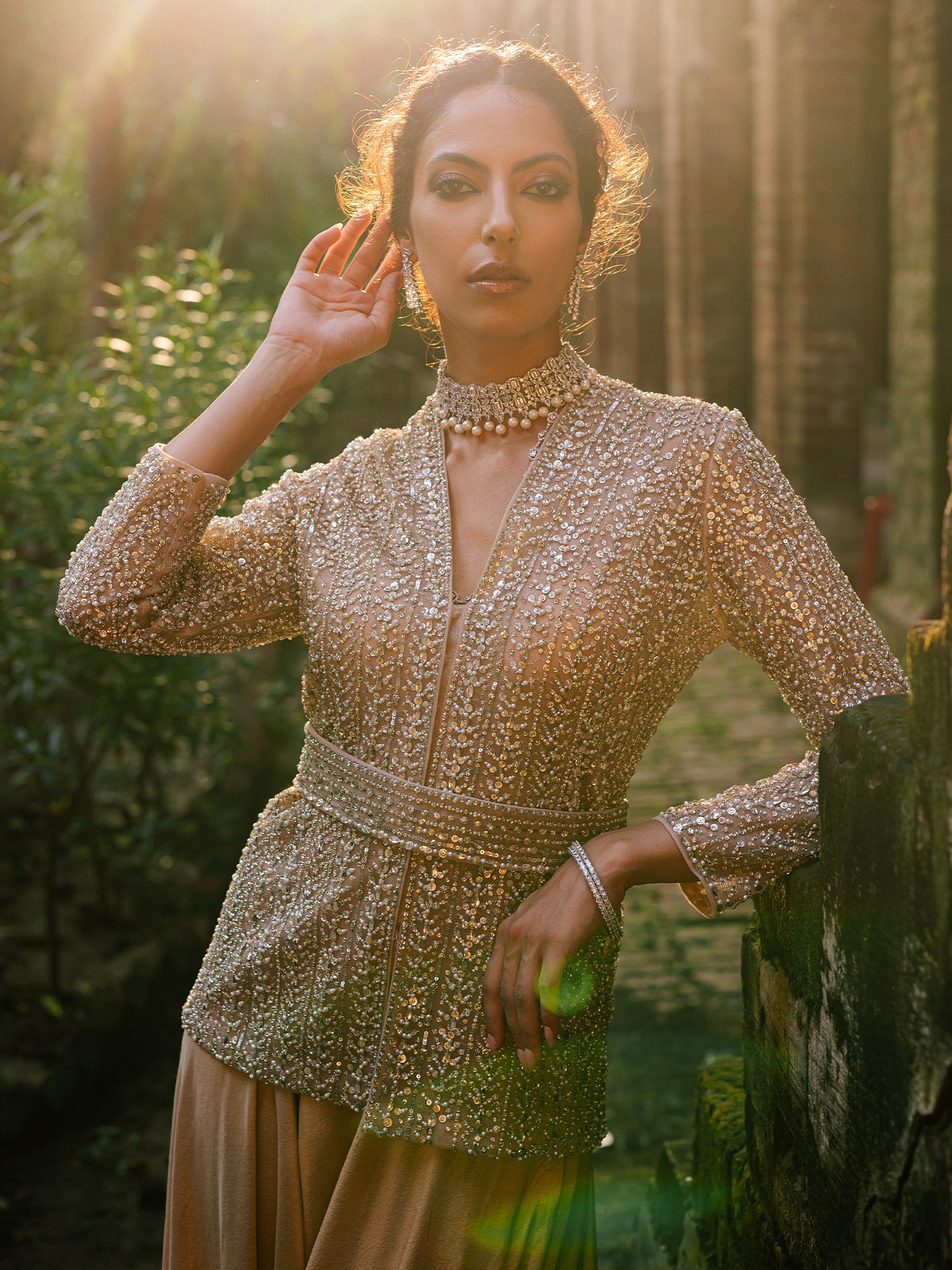 Stand out this festive season in our belted jacket. This versatile classic comes with an intricately handcrafted jacket, slip and belt - sure to become an indispensable part of your festive wardrobe. Paired with loose pants for effortless elegance.