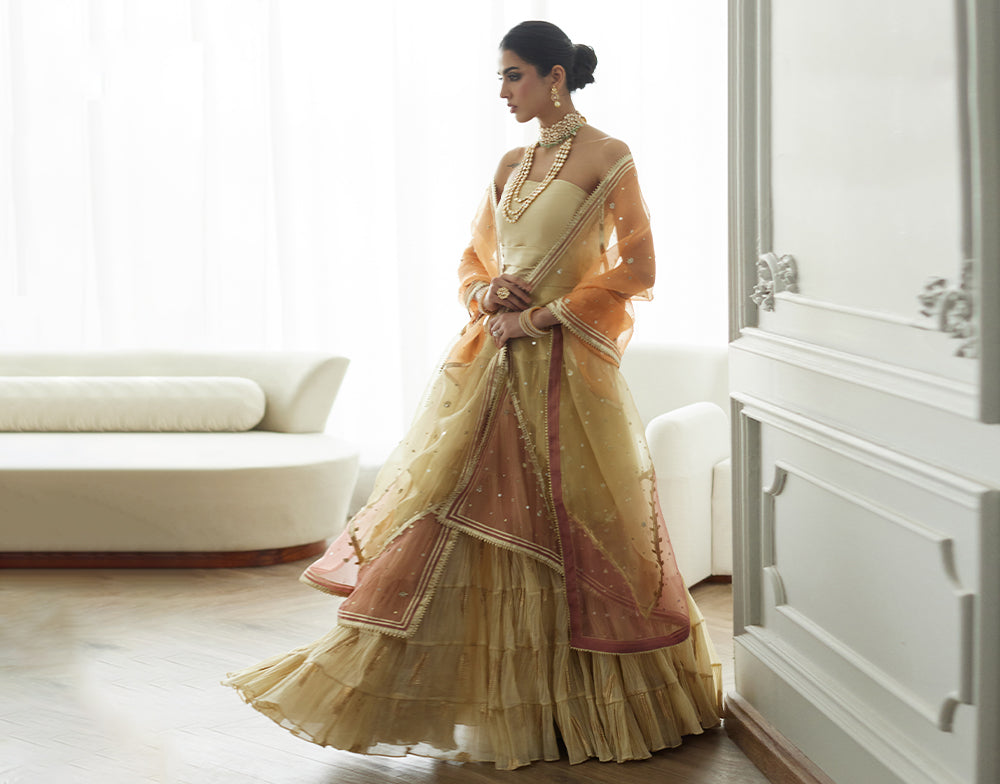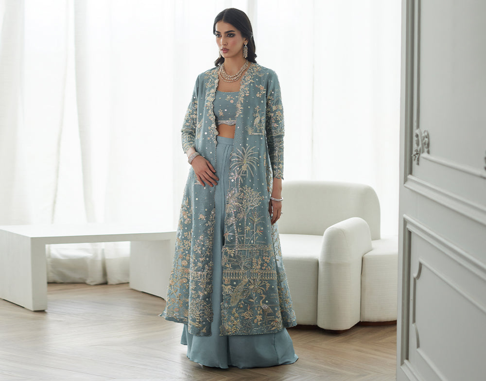 BORGIA COAT, BLOUSE & CRUSHED LEHENGA